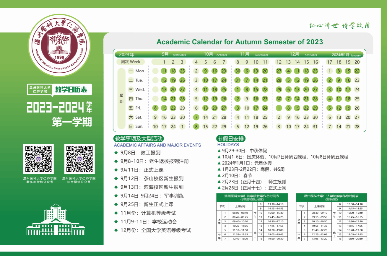 色花堂 2023-2024学年第一学期和第二学期教学日历表