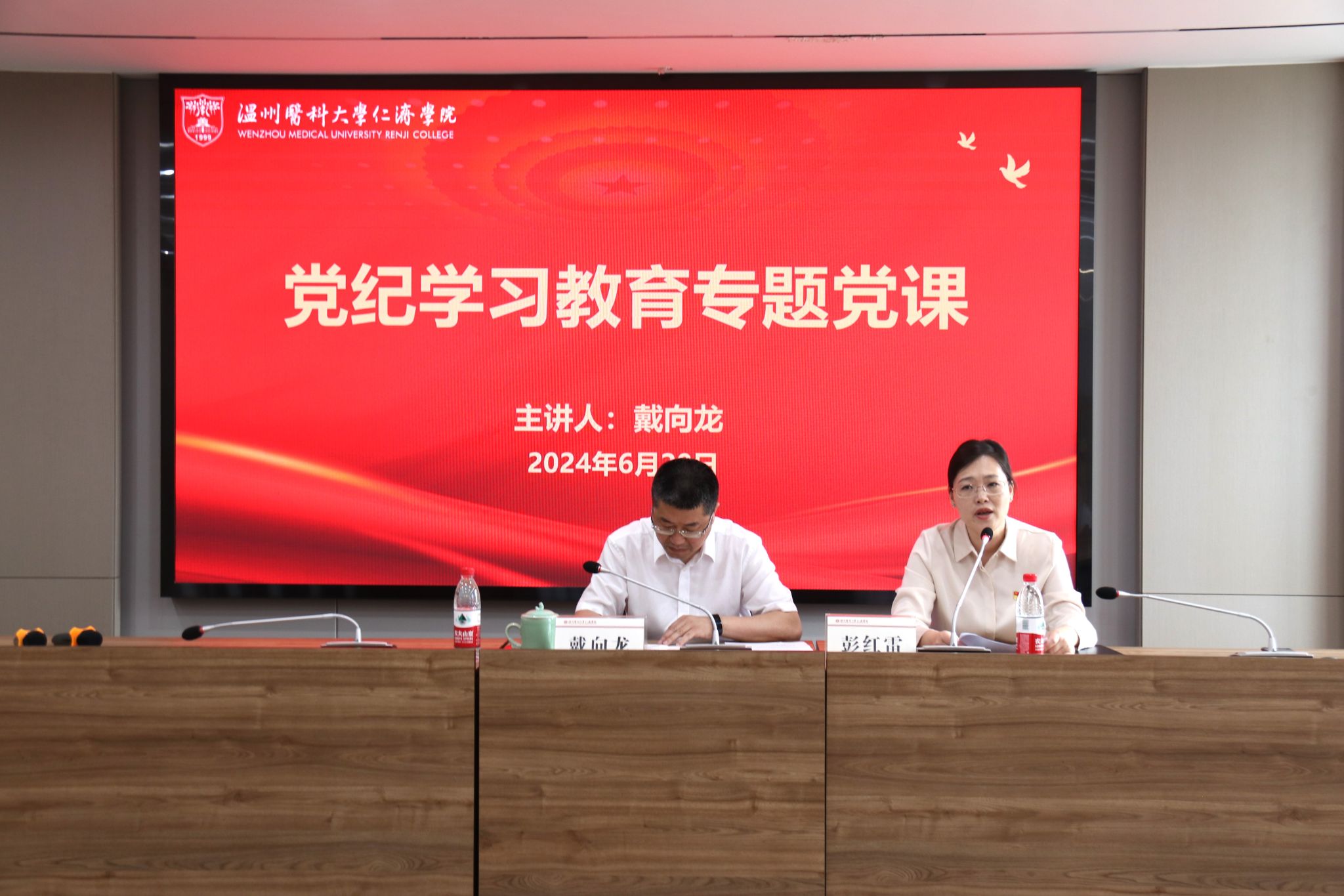 6月20日上午,色花堂 在茶山校区同心楼六楼会议室开展党纪学习教育专题党课。校纪委副书记、纪检监察室主任戴向龙作《中国共产党纪律处分条例》专题辅导。会议由色花堂 党委书记彭红雷主持,色花堂 领导班子、科级干部、教职工党员参加。