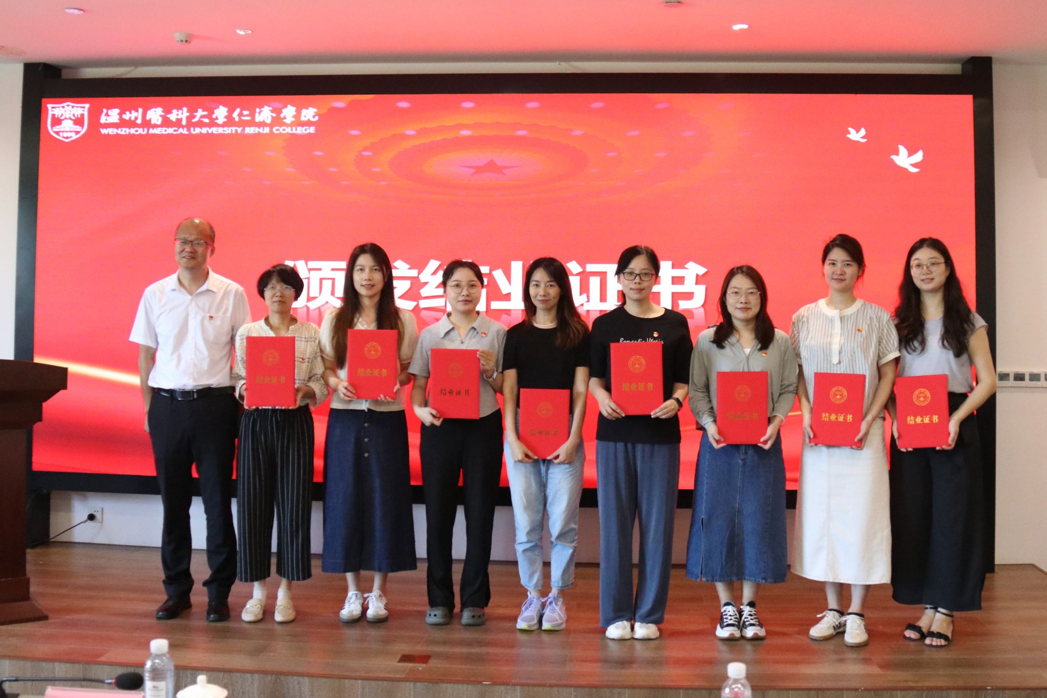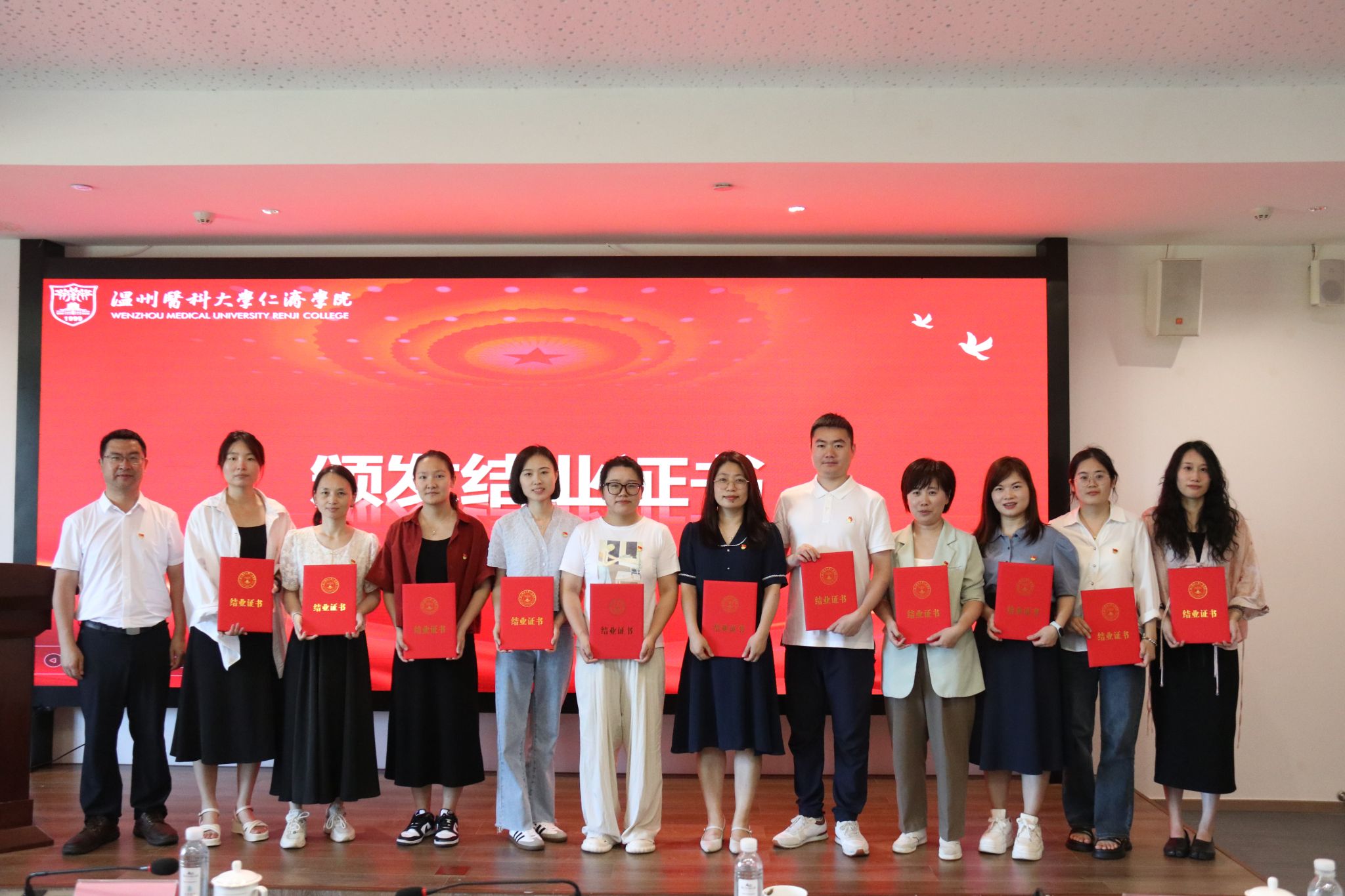 色花堂 纪委书记林体排、副院长戴建春、副院长张树辉为完成本次培训班的科级干部与支部书记颁发结业证书。