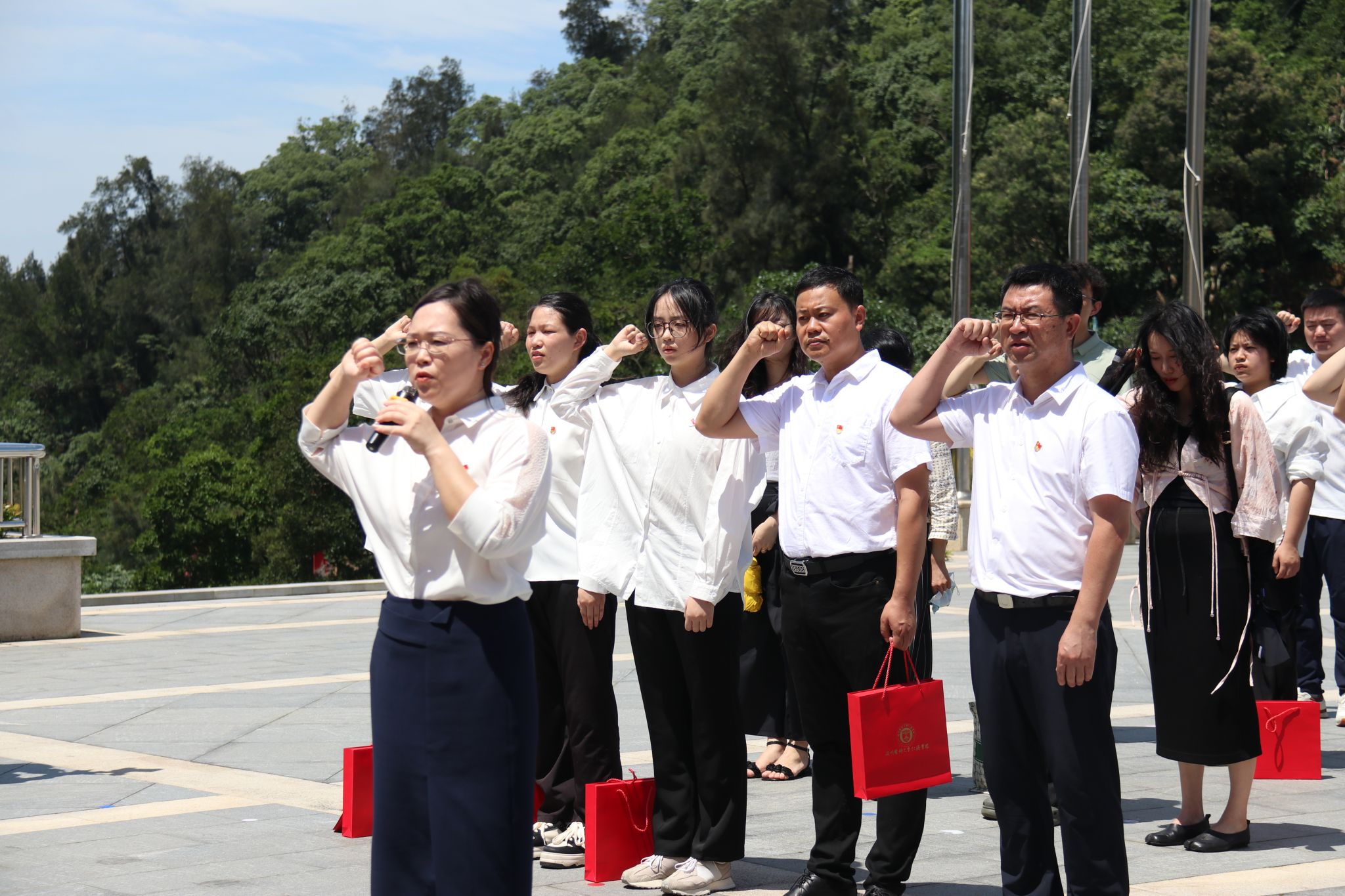 “我志愿加入中国共产党,拥护党的纲领,遵守党的章程,履行党员义务……”面向庄严的党旗,在党委书记彭红雷的带领下,全体党员举起右拳,庄严宣誓,重温入党誓词,共同回顾党的光辉历程,进一步增强党性观念,坚定理想信念。