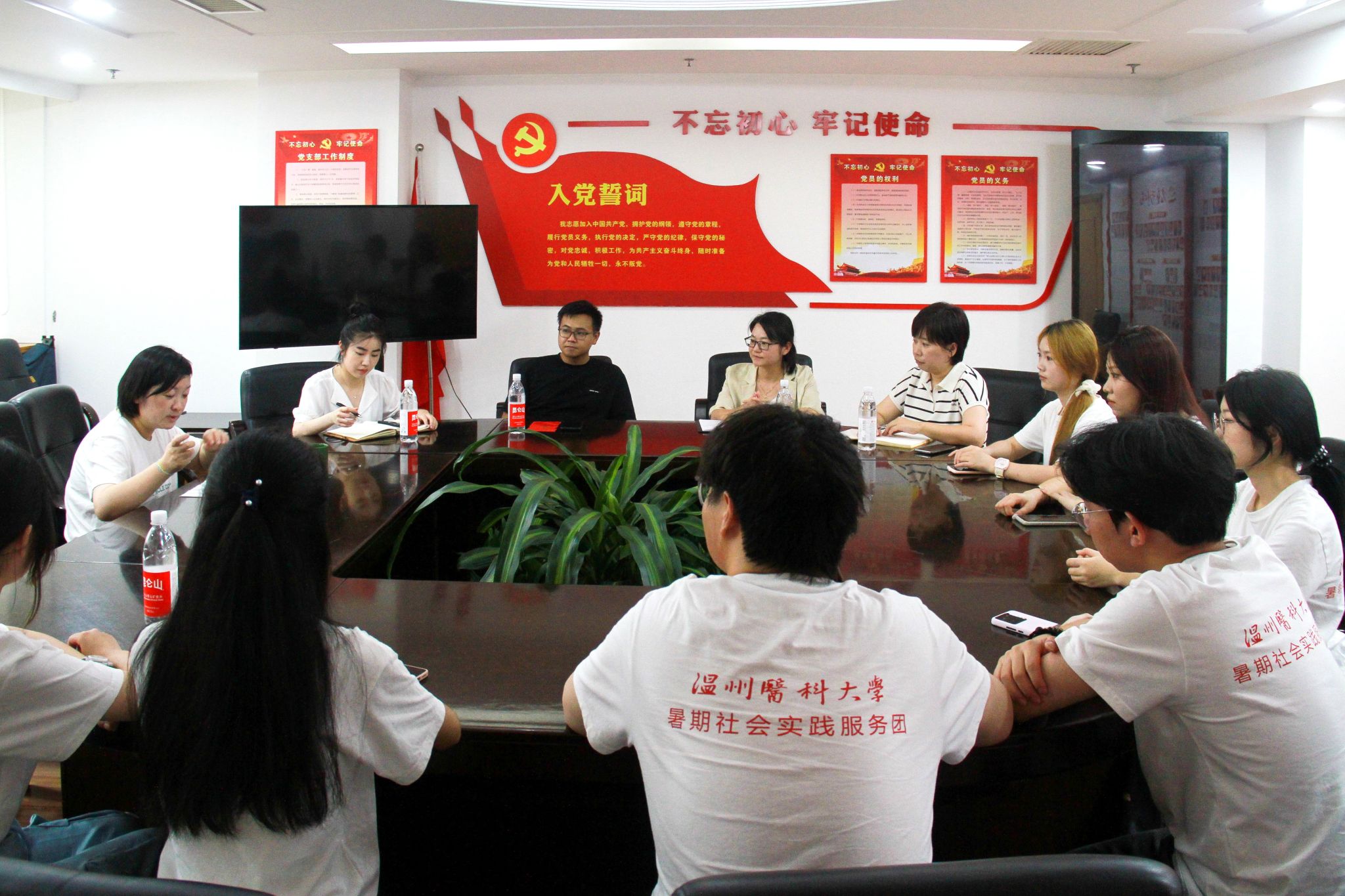 7月8日上午,色花堂 赴温州市新闻传媒中心开展交流座谈,并召开瓯越医线暑期实践团见面会。色花堂 党委副书记姜旭英、温州市新闻传媒中心总编室主任陈泰涨出席会议,双方相关部门负责人、暑期实践团指导老师及全体成员参加会议。