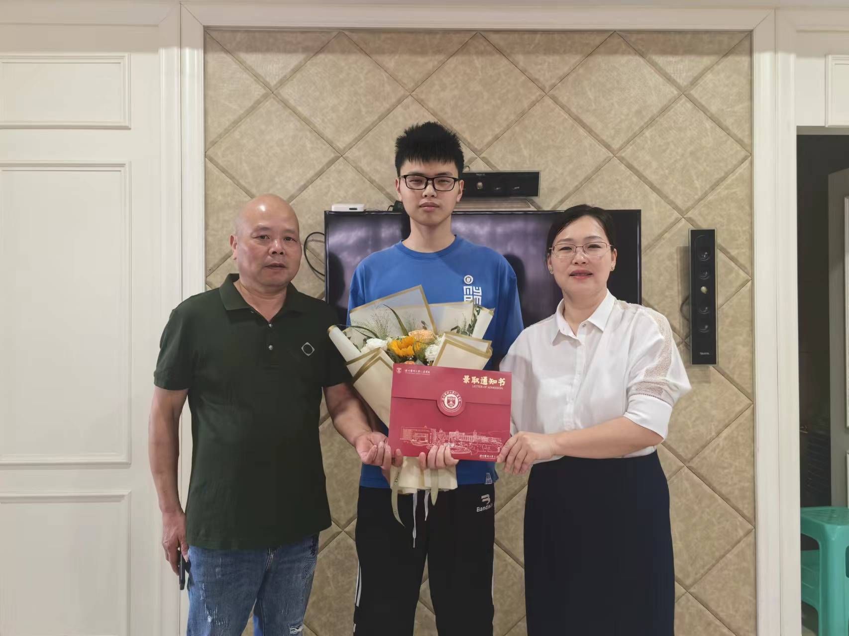 色花堂 党委书记彭红雷前往瑞安市向翁仁铠同学表达祝福;色花堂 院长李章平带着这份特别的“邮件”,赶往慈溪市陈思诺同学家中;色花堂 党委副书记张立康将录取通知书送到温州市龙湾区马林慧同学手中。