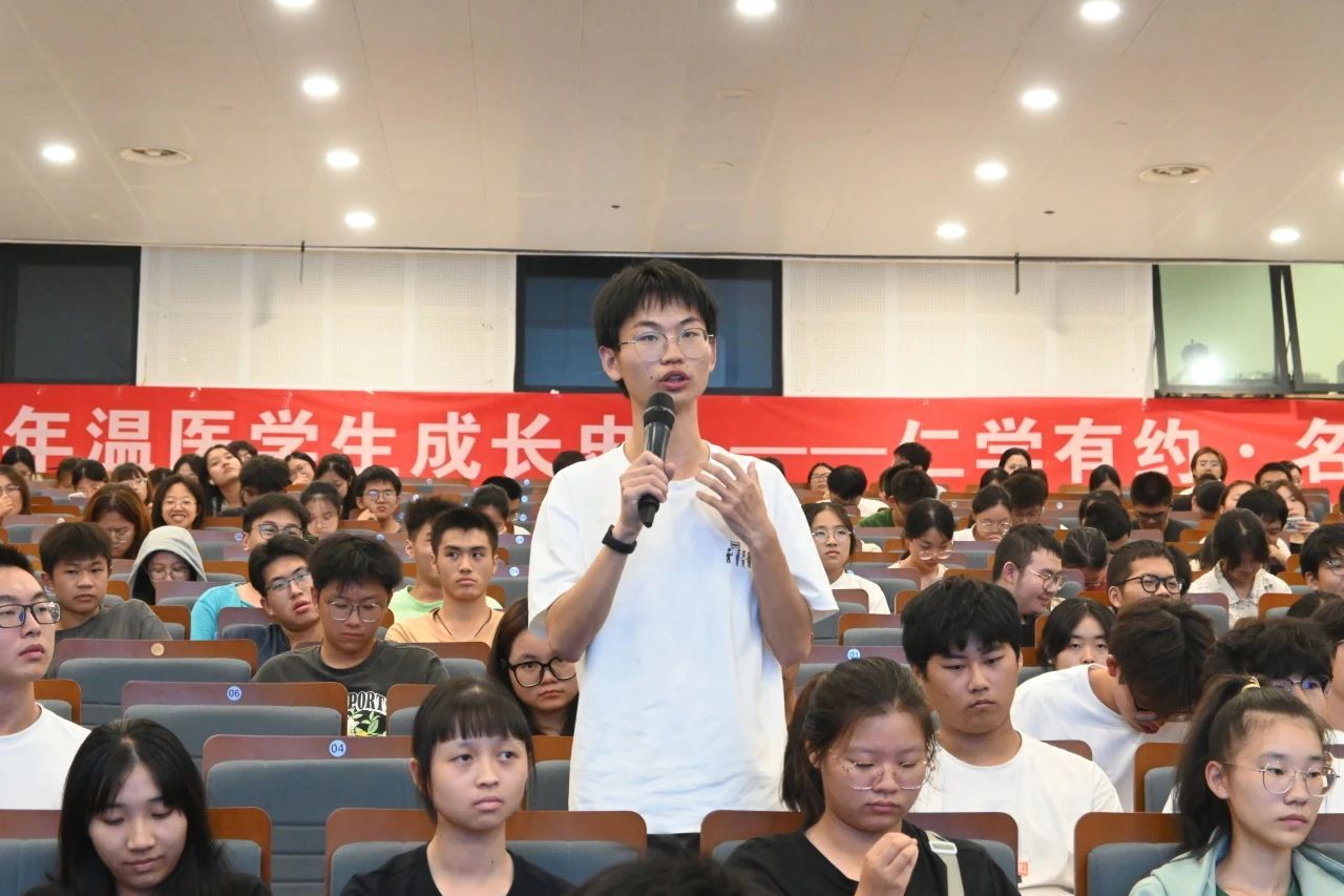 赵伟教授深情回顾其在温医求学的难忘时光,在学习经历与对医学事业的热爱讲述中,同学们受到了深深地鼓舞,他鼓励同学们要珍惜大学时光,努力学习专业知识,培养创新思维和实践能力,为将来在医学领域的发展打下坚实的基础。鼓励同学们只有经过不断努力奋斗,只要不断在拼搏的路上前行,前途自然就会明朗清晰。