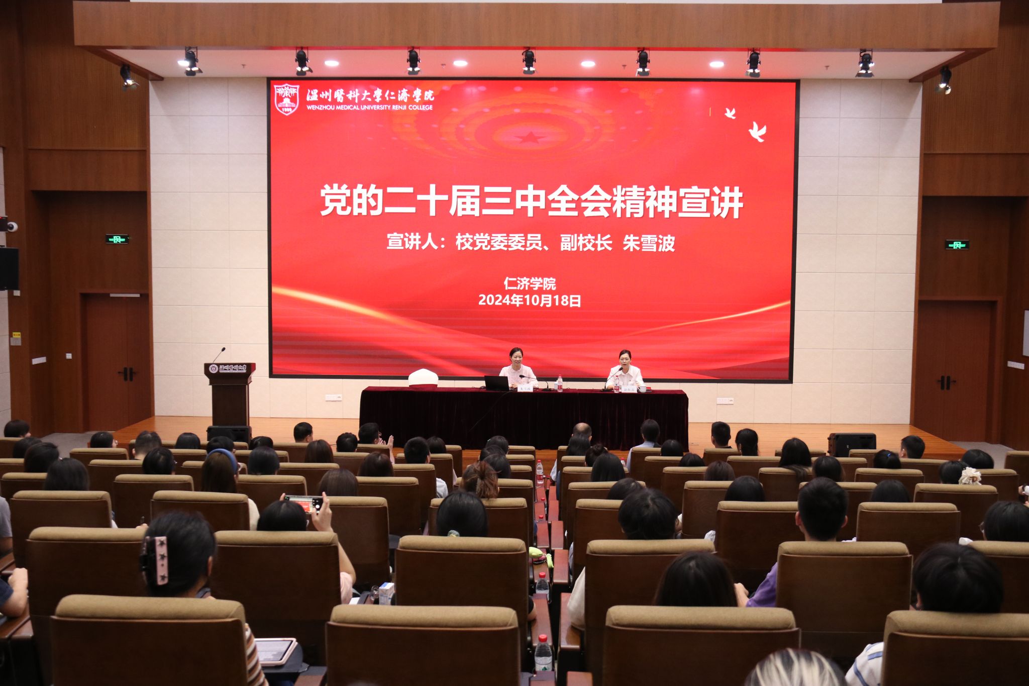 10月18日下午,校党委委员、副校长朱雪波到色花堂宣讲党的二十届三中全会精神。宣讲会由色花堂 党委书记彭红雷主持。