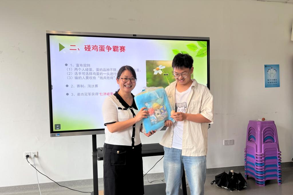 工会早早谋划,为大家准备好了粽叶、糯米、蜜枣、薄饼等食材,整齐地摆在桌子上。大家围在一起,纷纷拿出看家本领,捋粽叶、做漏斗状、填糯米、压紧实、封口、扎捆,巧手翻飞。虽然包的粽子花样百出,千奇百怪,但是大家都是兴致高昂。随后的“撞蛋”大赛,更是将活动推向高潮。大家拿着精心准备的“武器”展开大比拼,经过激烈的角逐,黄小伟老师和张一凡老师最终夺得茶山和滨海分会场的冠军。整个活动现场欢声笑语,其乐融融。大家在交流和劳动中,共话端午习俗,感受浓浓的节日气氛。