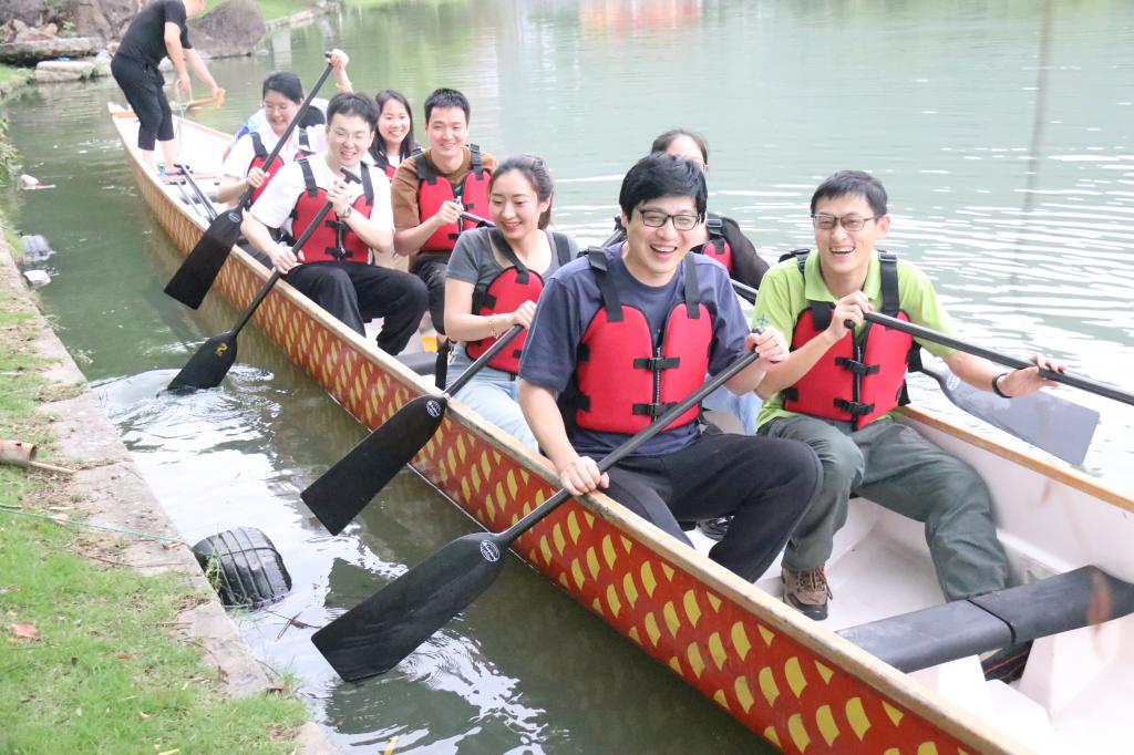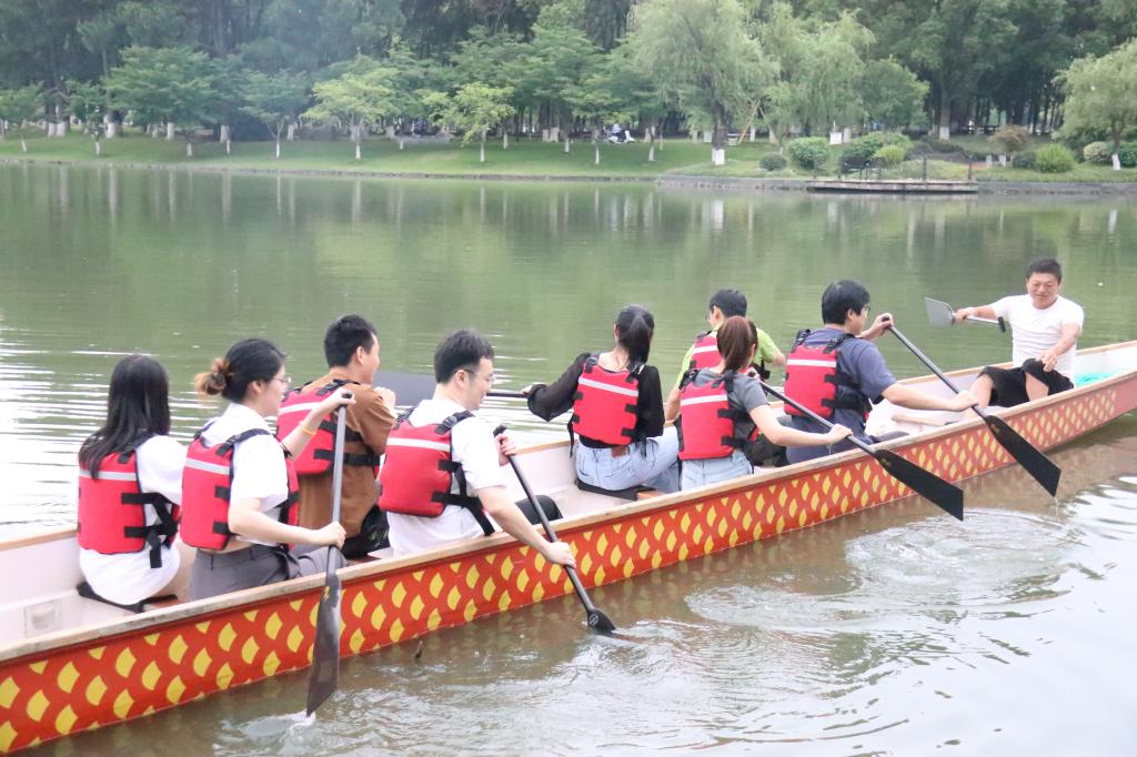 本次活动恰逢温州(瓯海)龙舟文化节,色花堂 工会在下午安排了划龙舟体验活动。此次活动由校龙舟协会亲自指导,让广大教职工近距离感悟龙舟文化,欣赏校园美景,用看得见、摸得着的方式,感受传统文化。