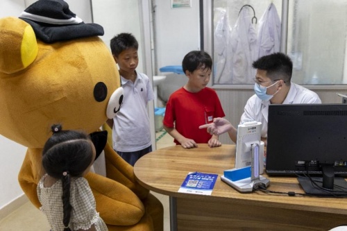 为关爱海岛心“晴”,共筑留守儿童心理健康同心圆,“小蜜蜂课堂”开设了众多心理教育课程,包括“绘制我的成长树”、音乐之声、诗词歌咏、体育嘉年华等内容,善用丰富多彩的活动形式设计德智体美劳全面发展的教育理念与具有当地特色的内容安排,寓教于乐地使青少年内化课堂知识,极大地丰富海岛留守儿童的暑期生活。其中,“泰迪熊医院”心理教育课程是“小蜜蜂课堂”的品牌活动,借助可爱的卡通熊形象消除或弱化儿童对医务人员或医院的畏惧感,提高儿童自我表达能力、熟悉就医流程。今年,“泰迪熊医院”创新性地联合洞头区鹿西乡卫生院,通过基础学习、模拟巩固、实地练习为鹿西岛儿童带来一堂“行走”的医学课程,带着“小蜜蜂”们走出课堂,更“走进”了课堂。