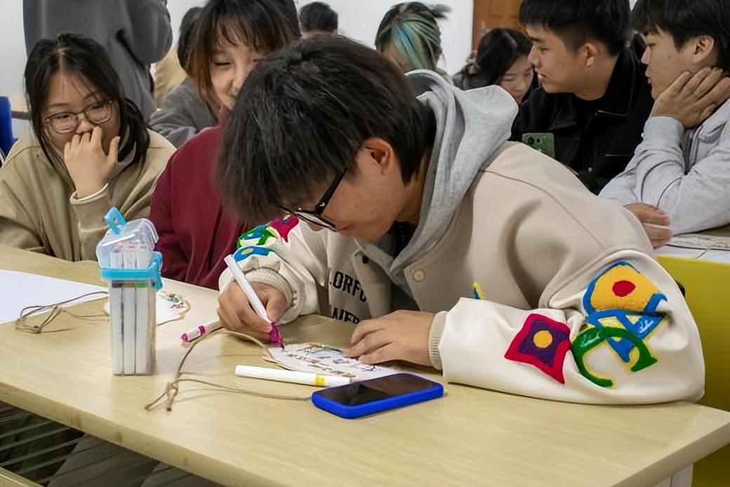 “‘天苍苍,野茫茫,风吹沙起好荒凉’,这原是一片沙地荒原,在三代塞罕坝人50多年的努力下,首都北京竖起了一道绿色屏障”,宣讲员向同学们分享了塞罕坝的故事,“112万亩林海、4.8亿棵树木,排起来可以绕地球12圈,蔚然而成绿色的海洋。”在一张张照片、一幕幕影片的直观感受下,同学们深受震撼。“塞罕坝林场建设者忠于使命,无私奉献,赢得了联合国环境署的‘地球卫士’的美誉,我们应该向他们学习,用实际行动守护来之不易的绿水青山”,现场一位同学说道。“沉浸式学习”的方式全方位拓宽了学生植物认知视角,在双重体验之后,同学们热情高涨,纷纷动手画出“我眼中的绿水青山”,还巧妙构思了“与树共舞”“植此青绿”等植树节创意标语。