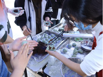 指导老师刘岩带领入党积极分子一起深入社区和教学楼,将制作好的清明粿免费分发给师生,一时间,滨海校区增添了好几抹“校园红”。祝福浅浅,牵挂深深,虽然各地清明习俗各不相同,但品尝过的老师和同学们都纷纷点头,表示回想起了家乡的清明记忆。