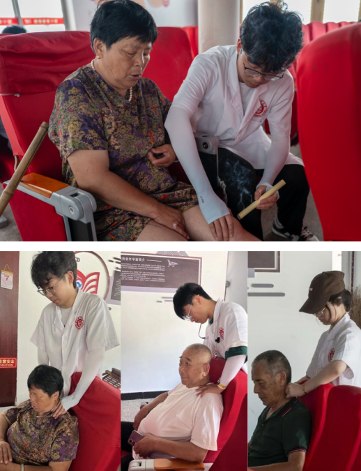 义诊进海岛,“医”线暖人心。鹿西村老年学堂里,实践团的成员们为鹿西村的老人们测量血糖和血压,逐一对老人们的常见病、多发病、慢性病进行初步筛查;通过艾灸和推拿按摩为老人们缓解身体不适,让海岛老人在家门口就能享受到便捷、专业的中医健康保健服务;耐心询问老人们的身体状况、解答各类疾病问题。