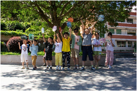 课程最后,小朋友们纷纷展示了自己的漆扇和书法作品,作品虽然略显稚嫩,但却充满了童真与创意。