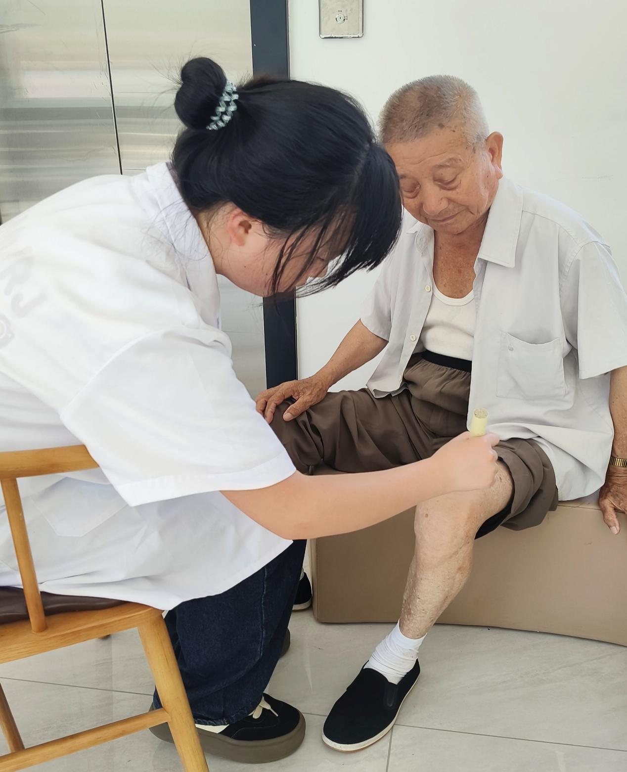 艾灸与推拿是本次健康服务的特色。同学们严选洞头本地优质艾草制成艾条,施灸时精准把控距离与温度,重点针对关节炎等常见痛症施治。针对海岛渔民高发的寒湿症状,特别加入海风藤等本地特色药材,显著提升疗效。推拿服务则精准作用于肩井穴等关键部位,力道适中,手法专业,有效缓解了多位老人的肩颈酸痛与疲劳。老人们“像晒着洞头的暖阳”“比海风拂过还舒坦”的质朴反馈,印证了传统中医疗法与海岛实际健康需求的完美结合。