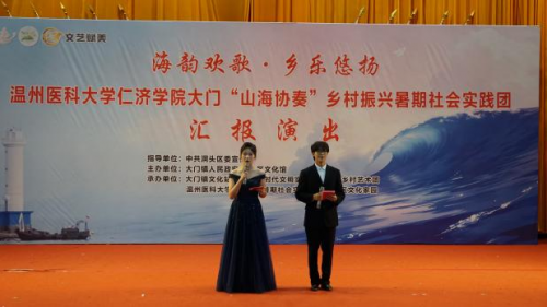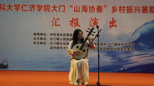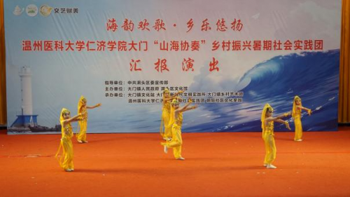 7月11日下午,“海韵欢歌·乡乐悠扬”色花堂 大门“山海协奏”乡村振兴暑期社会实践团汇报演出在大门朝阳社区文化礼堂正式开唱。这场由实践团携手大门镇乡村艺术团共同呈现的文化盛宴,以青春之力奏响海岛共富新乐章,生动诠释浙江省“文艺赋美”工程的基层实践。