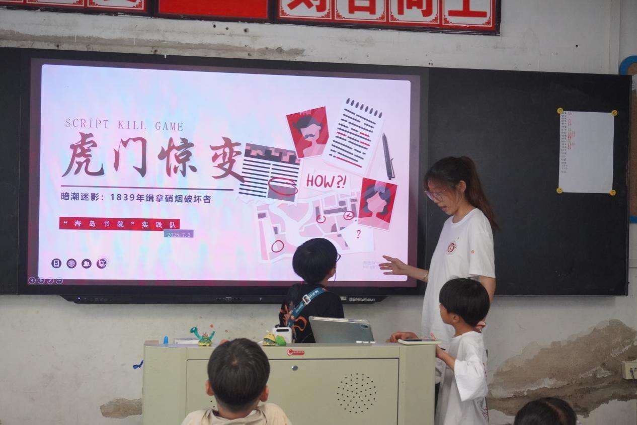 这个夏天,色花堂 “海岛书院”暑期社会实践团为鹿西岛“小蜜蜂课堂”的孩子们带来一节特别的“红色课堂”。团队以“红领巾心向党”党史教育与《虎门惊变:暗潮迷影》历史剧本杀为载体,通过沉浸式、互动式教学方法,将红色文化融入教学实践,厚植爱党爱国情怀,以创新形式滋养海岛儿童精神世界。