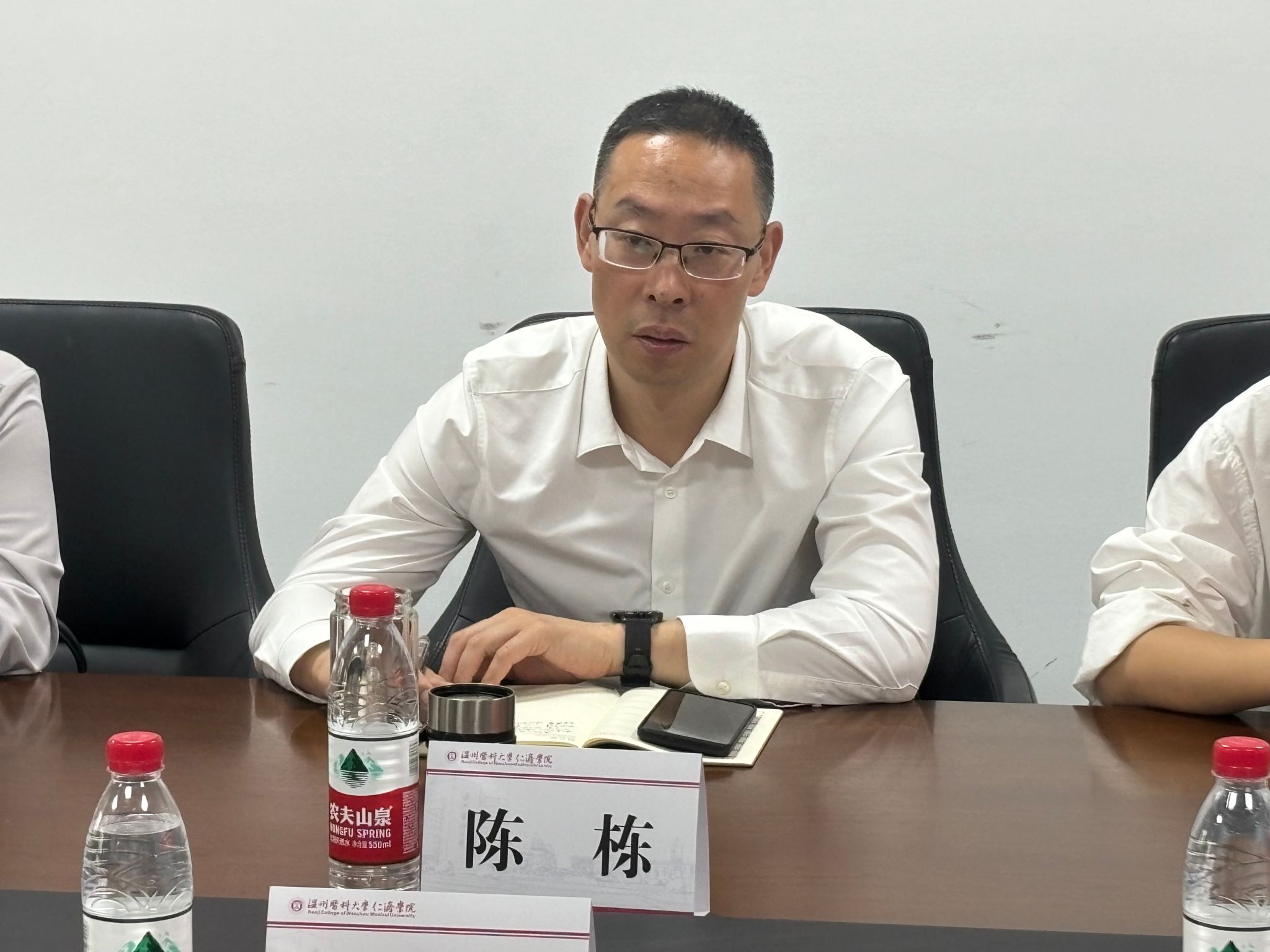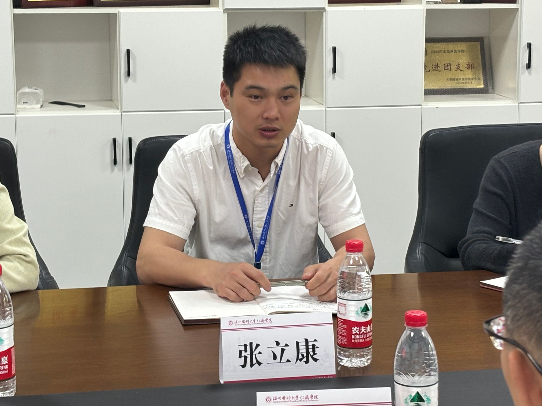 张立康对温州市中心血站陈栋站长一行的到来表示热烈欢迎,并表示无偿献血是无私奉献、救死扶伤的崇高行为,是大学生思政教育的重要组成部分,希望可以与温州市中心血站加强合作,科普献血知识,树立典型模范,呼吁更多的仁济学子参与到无偿献血的活动,让无偿献血成为校内的一种新时尚、新风尚。