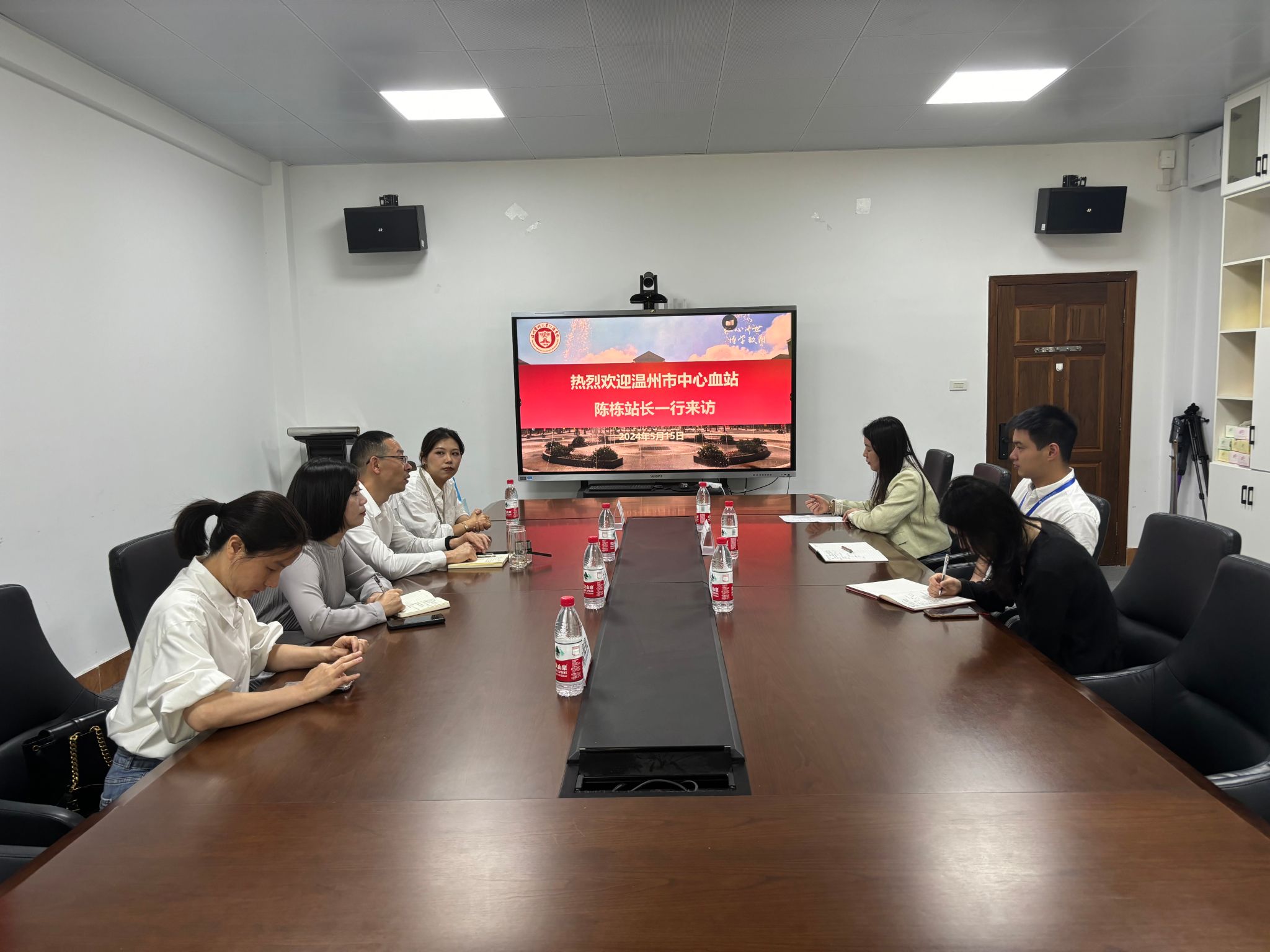 5月15日,温州市中心血站站长陈栋一行来色花堂调研无偿献血工作。色花堂 党委副书记张立康、团委书记王翩翩及志愿者服务中心指导老师等参加了座谈。