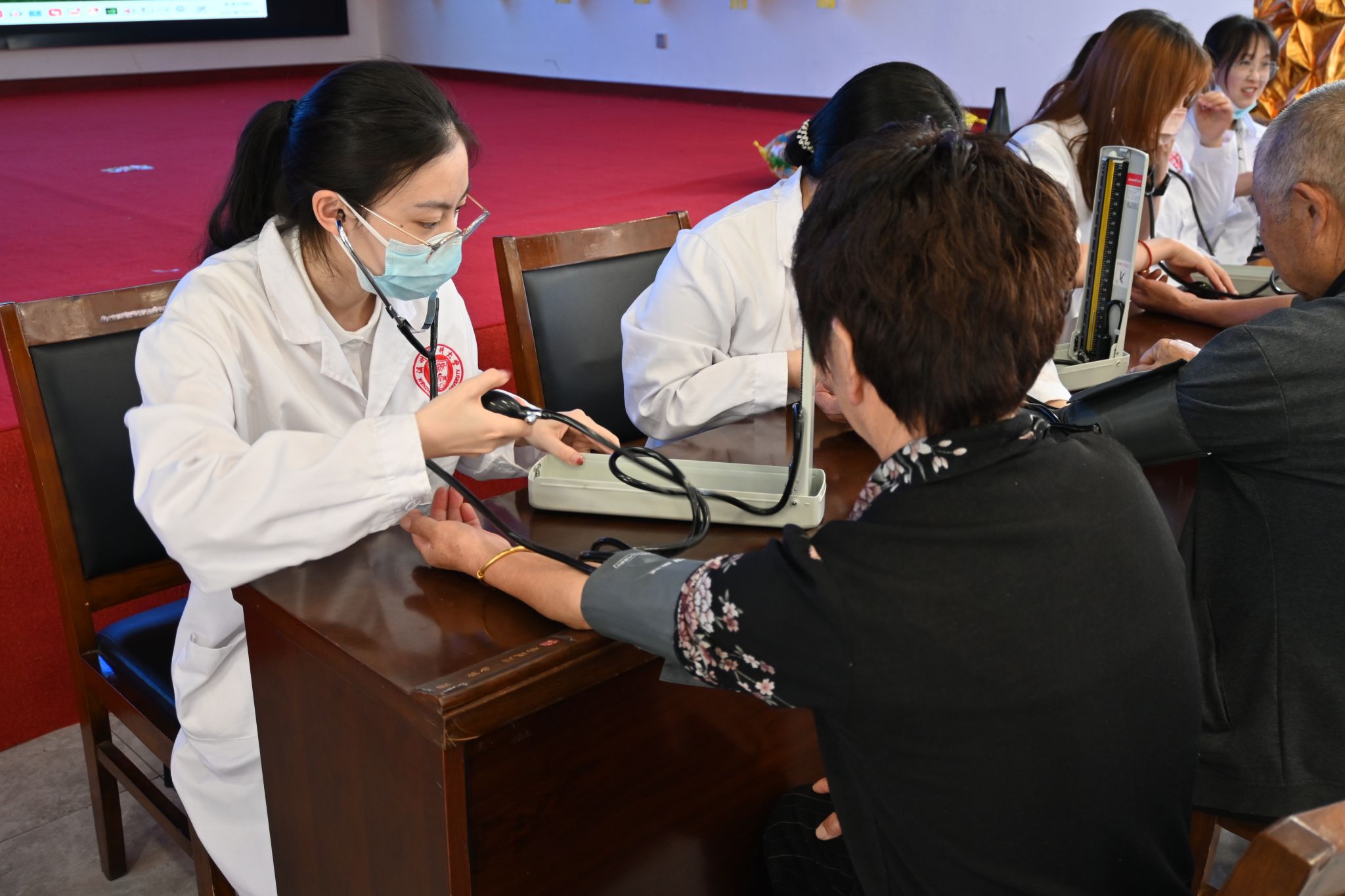活动当日,志愿者们早早地来到现场摆好医疗器械、分配好暖心福袋。活动伊始,在志愿者的带领下,老人们有序地进行检查。面对前来就诊的老人,志愿者们耐心细致地为老人健康查体、测量血压、血糖等,细致入微地询问老人们身体状况,认真解答老人们提出的各类健康问题,告知日常饮食的注意要点、预防疾病的小妙招,并给予科学的用药指导,“老人家,你的血压有点高,要按时吃药,注意饮食作息规律。”“老人家,你睡眠不好,要注意自己的情绪。”活动接近尾声,在志愿者带领下,老人做起了健康拍拍操,对促进血液循环、疏通筋络大有助益。最后,志愿者给老人们分发了暖心福袋,提供一些生活必需品和按摩捶,给老人们送去爱心关怀,活动现场忙碌而温馨。