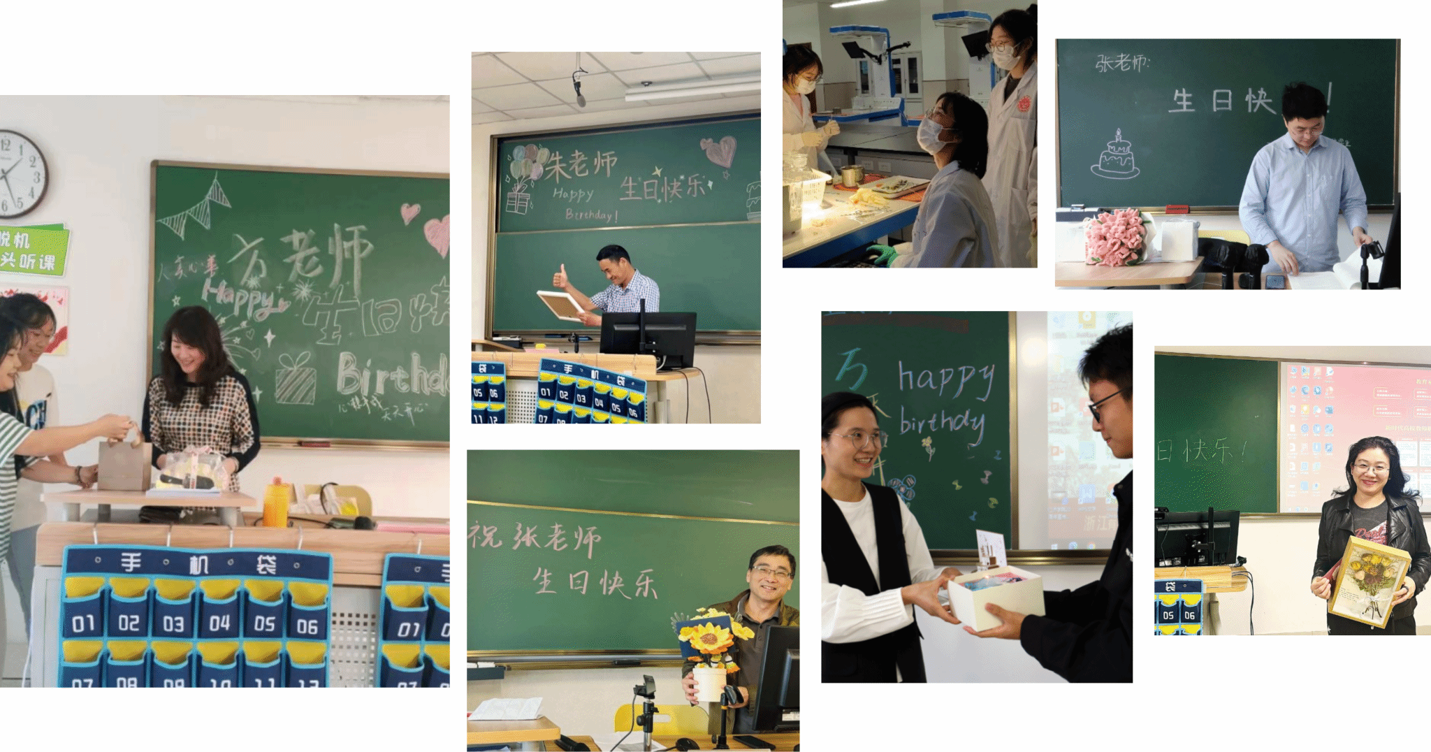 色花堂长期以来致力于培养学生的感恩意识,将感恩教育融入校园文化中,通过一系列实践活动,让学生学会感恩、尊重和敬爱。其中,一项特别有意义的活动就是动员学生团支部,为在上课当天恰逢生日的老师庆生,以此传递学生对老师的深深敬意和美好祝愿。至今,这一活动已成功开展了7次,每一次都给师生留下了难忘的回忆。