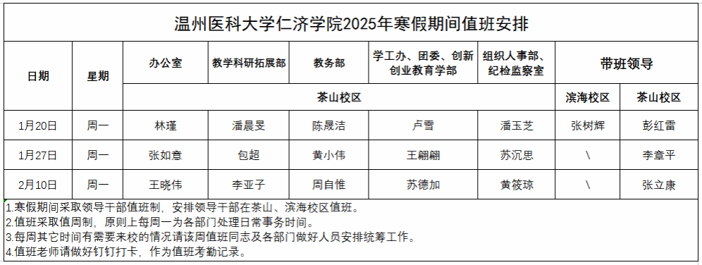 三、寒假期间各有关部门要切实做好留校师生的管理服务和后勤保障工作。