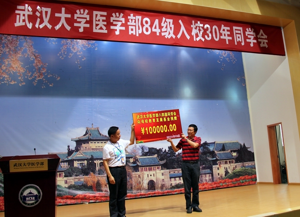 79级校友向母校捐赠18万元,84级校友向母校捐赠10万元。他们感谢母校的培育,建议将捐款用于支持和促进学校医学教育事业的发展,帮助家庭经济困难的大学生顺利完成学业。(王莹)