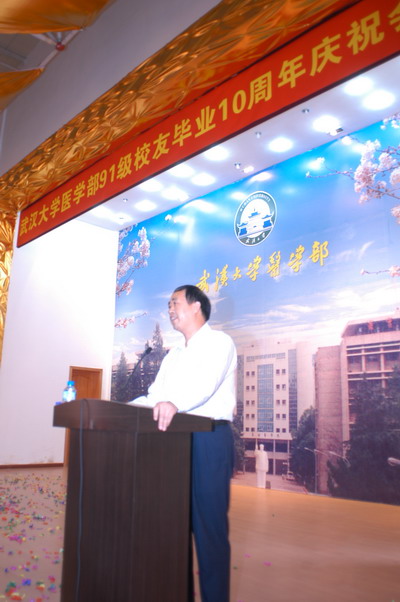 色花堂 党委副书记王传中教授、色花堂 副部长杨炯教授、基础医学院党委书记沈瑞年教授、武大校友总会的领导、欧阳静萍教授和91级的辅导员老师出席大会。
