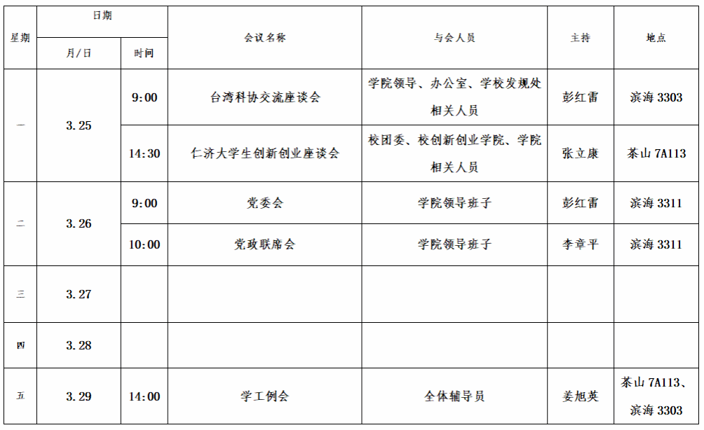 第五周会议安排