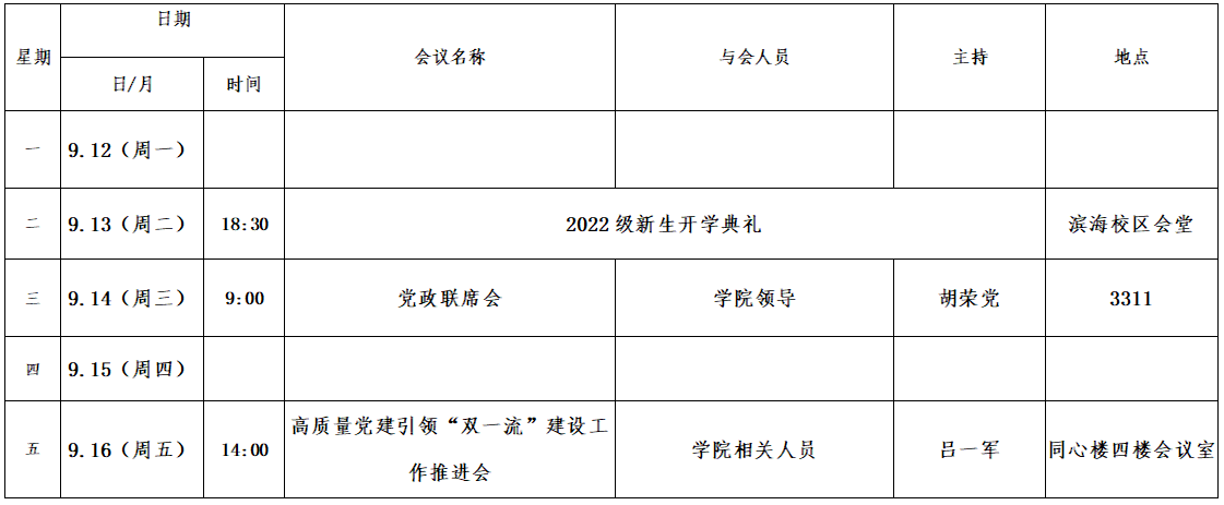 第四周会议安排