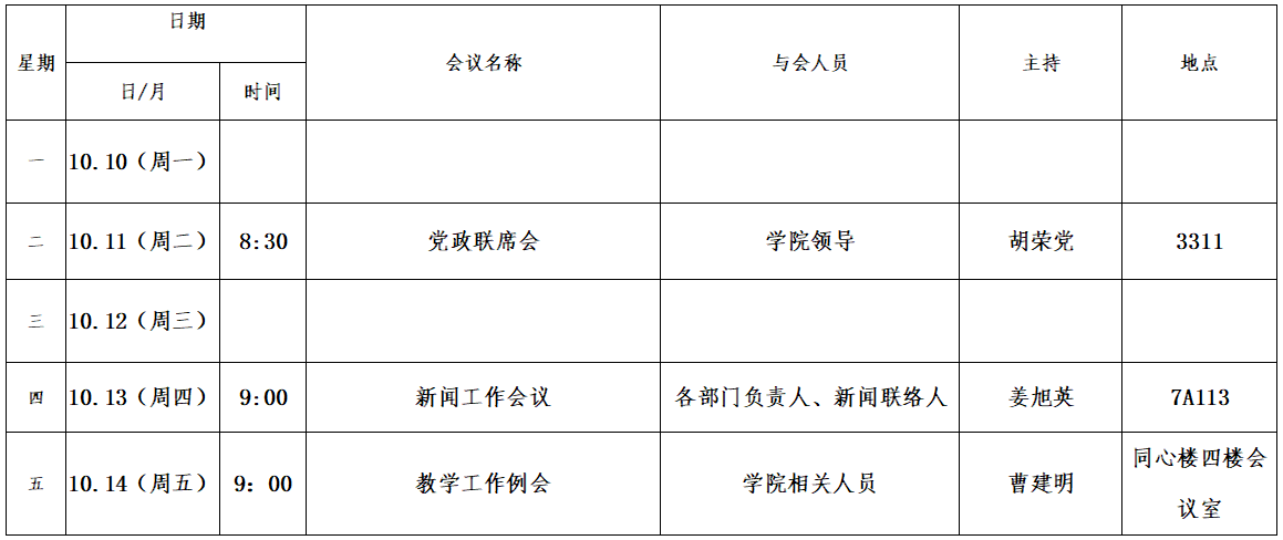 第五周会议安排