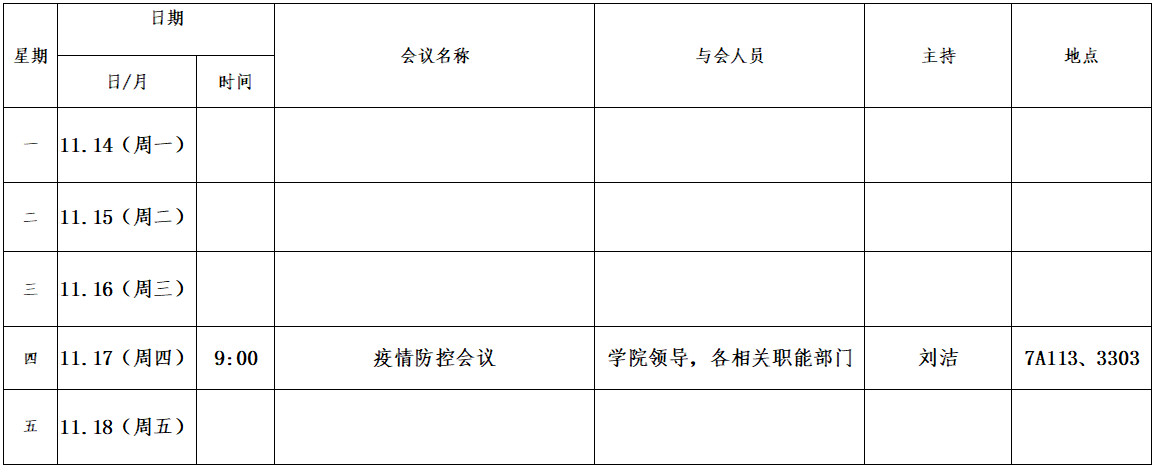 第十一周会议安排