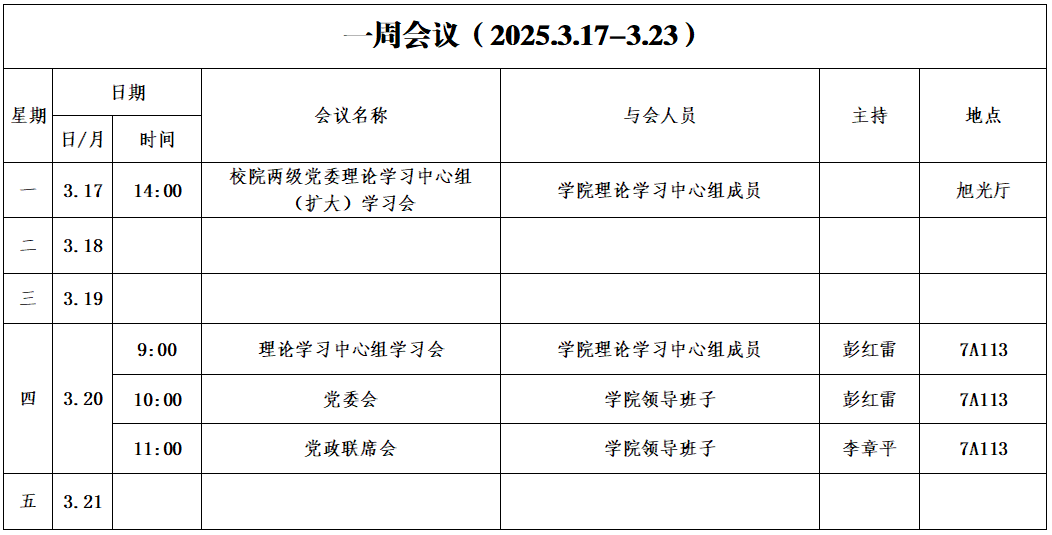 第五周会议安排