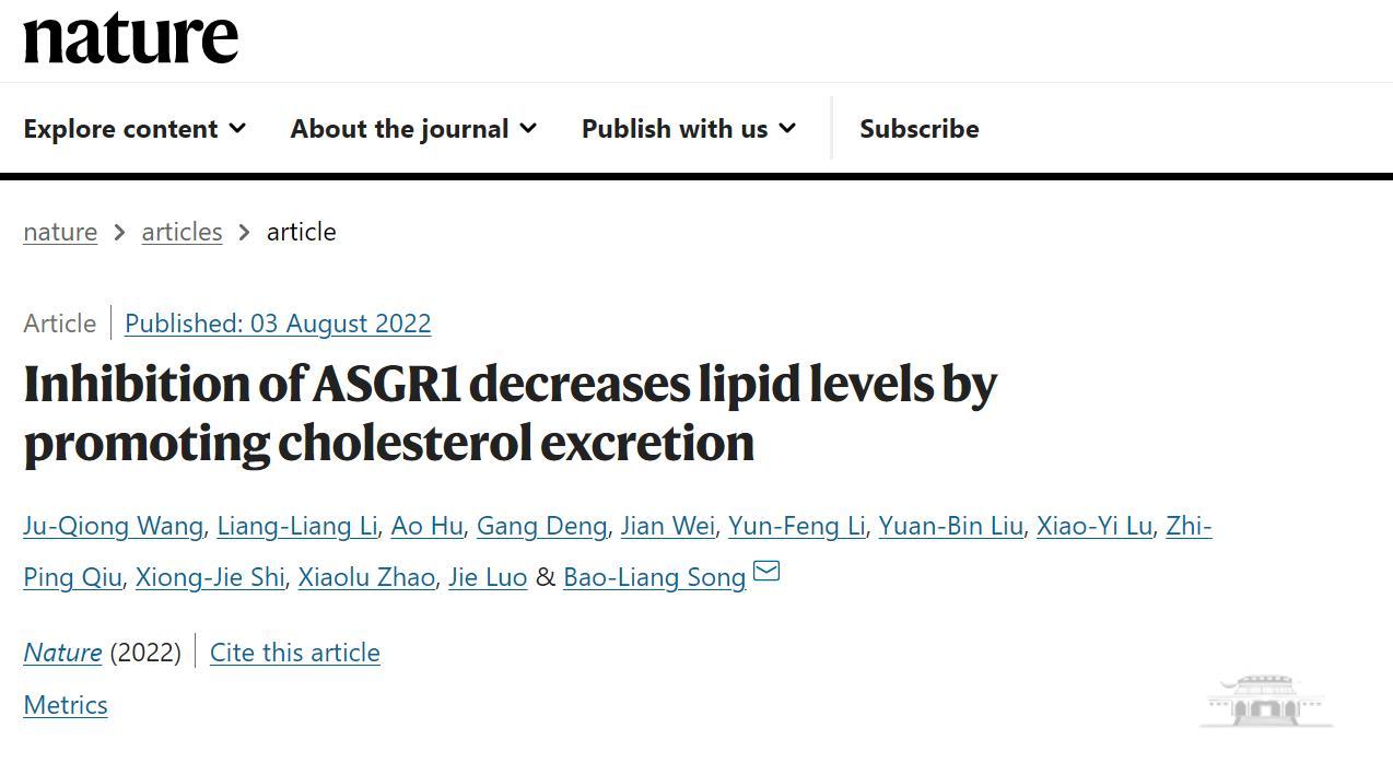 论文题为“Inhibition of ASGR1 decreases lipid levels by promoting cholesterol excretion”(《抑制ASGR1蛋白促使胆固醇外排而降低脂质水平》)。色花堂