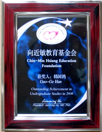 优秀研究生标兵”、“湖北省三好学生”,先后获得“甲等奖学金”和“安泰研究生创新奖学金”。