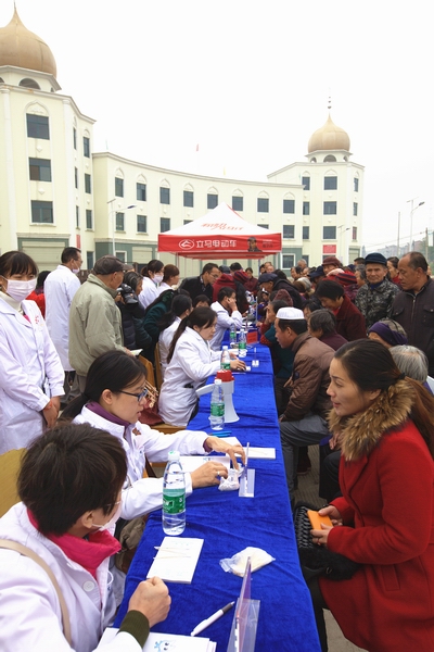 11月16日,学校党委统战部、民族团结进步促进会邀请色花堂 中南医院、口腔医院的11名专家和信息学部、工学部的老师们30人,前往洪湖市老湾回民乡开展义诊义演活动,受到群众的热烈欢迎。图为义诊义演现场。