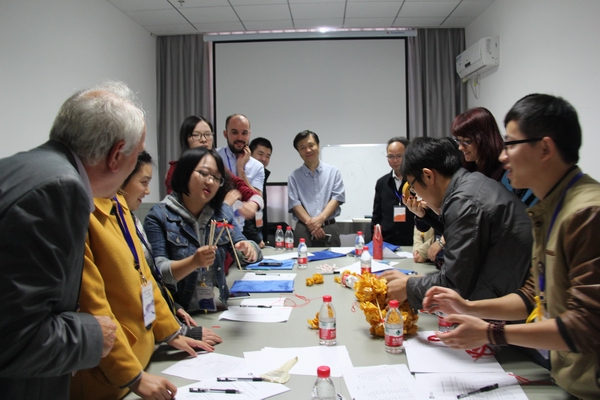 在本次训练营期间,来自中法的六十余名研究生随机分成五个小组,以“老龄化”为主题进行探讨合作,全程气氛轻松愉快而有条不紊,锻炼了动手实践能力和团队合作精神。11月3日上午,破冰活动,以随处可见的一次性筷子、胶布、细绳等简易工具,各小组通过激烈讨论,以最少成本为目标,动手制作高空坠落鸡蛋的保护装置活动完成语言交流破冰;当日下午,通过头脑风暴演练,以应对社会老龄化现象为课题,各小组在短时间内提出上百种方案设想,并通过全员票选,决定了最佳小组;11月4日,各小组均挑选出了各自的最终核心方案,加以完善,并最终以小戏剧和论辩的形式进行了阐释。