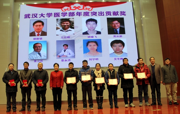 2015年度医学突出贡献奖”的表彰决定。冯友梅、王传中、舒红兵等领导为郭德银教授等27名获得者以及 “中南医院急救医学教学团队”和“中山医院心血管内科团队” 两个团队颁奖。