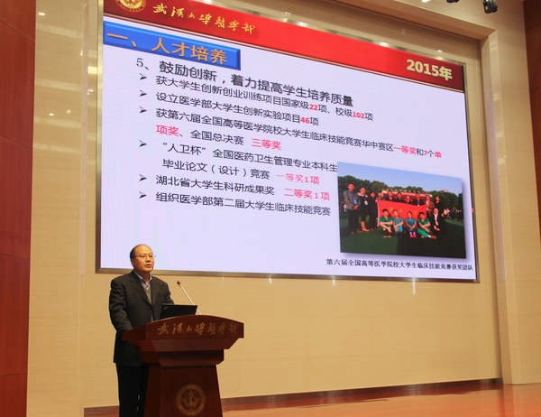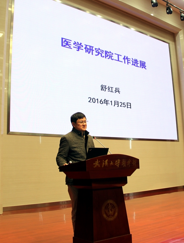 颁奖结束后,医学研究院院长舒红兵对医学研究院在人才引进,硬件条件以及未来设想等方面进行了详细的介绍和汇报。舒红兵强调指出,医学研究院将继续放眼国际,引进人才,构筑大平台,联合开展大项目,为学校的长远发展做出贡献。
