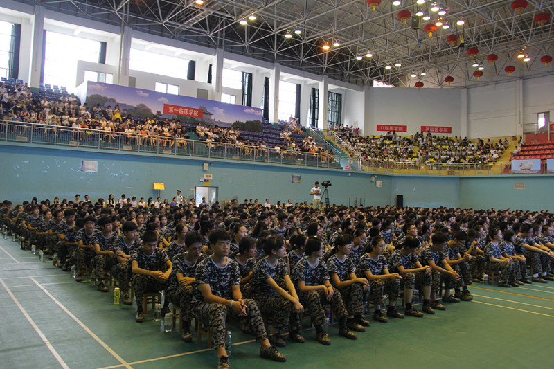 迎新大会上全体新生举行了庄严的宣誓,“健康所系,性命相托……”,《医学生誓言》回响在体育馆内,镌刻下他们的志愿、决心、追求与信念,探索医学的梦想从此起航!