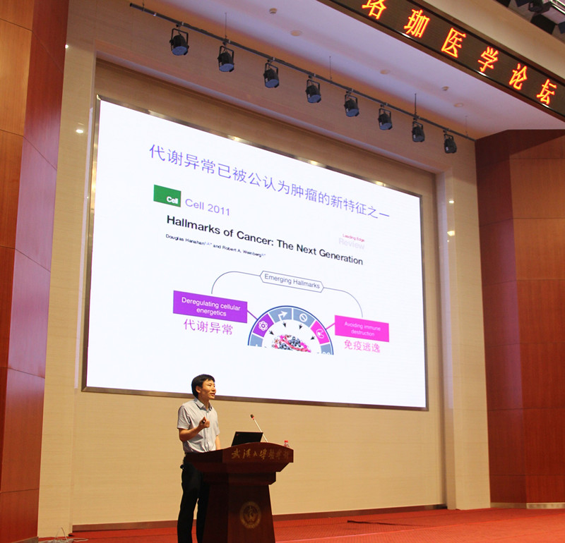 主办、医学研究院承办的珞珈医学论坛开幕式暨第一讲:代谢异常促肿瘤恶性进程的分子调控机制,在8号楼裕璧厅举行,主讲人为国家杰出青年科学基金获得者,医学研究院教授,博士生导师卿国良。开幕式由色花堂