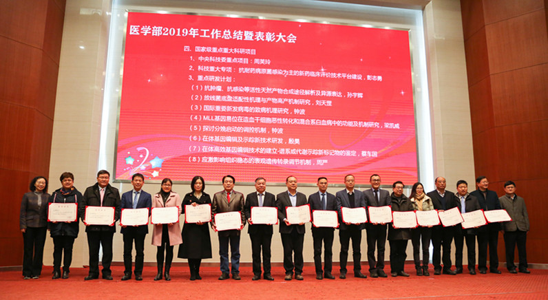 党工委副书记何小华宣读表彰文件,校领导向在学校“双一流”建设和一流医科发展中作出突出贡献的集体和个人颁发荣誉证书。