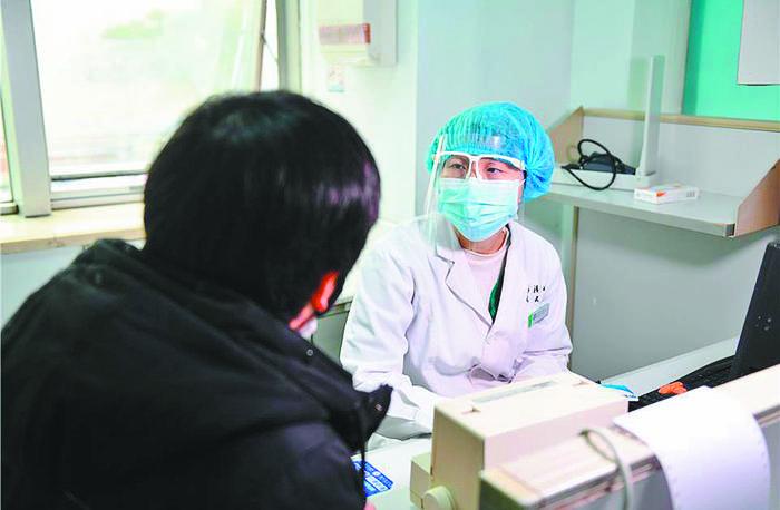 疫情未暴发前,张旃在门诊看诊时,已做好主动防护。 刘 瑜摄
