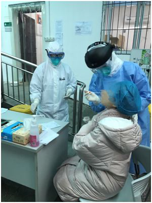 发热门诊护士还承担着风险性极高的鼻咽拭子采集工作,平均每天要取500多例标本。而取标本时,发热患者要取下口罩、头向上扬起,采样管刺激鼻腔时患者还可能会咳嗽打喷嚏,这极大增加了护士暴露感染的风险。