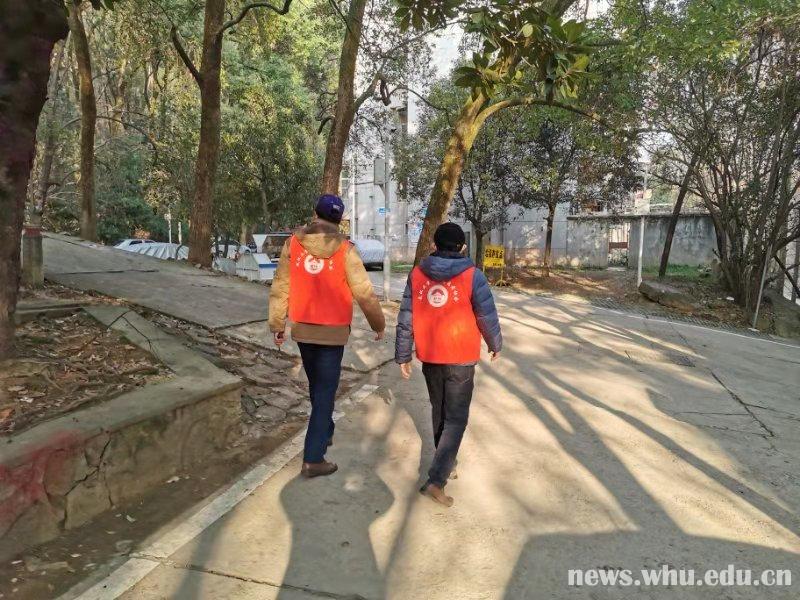 校园平安有序,他们是守护神。早在校园卡点管控任务启动前,离退休工作处副处长王临平带领十余位同志每天分片区巡查校园两次,发现有出门不戴口罩或者聚集聊天的情况及时提醒,将校园防护落实落细。校内卡点执勤启动后,突击队轮班派出20位队员,分别守在校内的5个卡点,维持校园秩序,守护师生安全。2月15日武汉突降大雪,执勤的同志全身冻透,仍然迎风立雪,坚守岗位。学校片区楼栋值守开始后,突击队员不仅做好自己片区值守工作,还积极协助人手紧缺的其他分党委开展值守,协助解决留校师生的生活困难。科发院成果平台处副处长胡浩在值班时,得知自己工作片区有退休老同志急需血糖仪,赶忙利用工作间隙跑了两家药店,最终买到并及时送到了老同志手上。