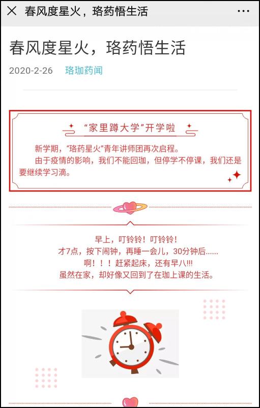 “珞药星火”青年讲师团开展线上活动