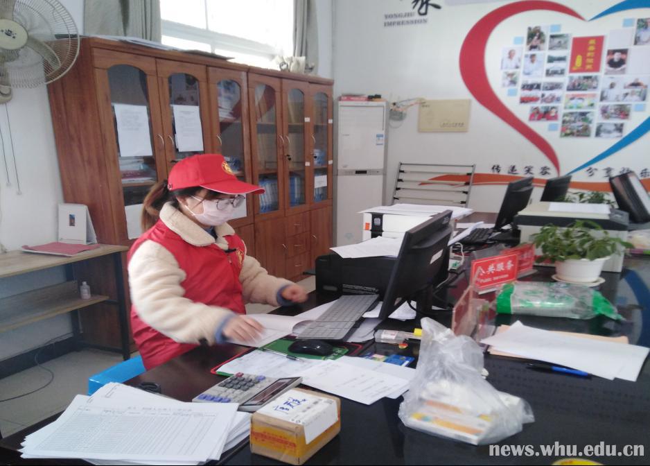 2017级博士生李芊芊返乡解除观察后,到家乡所在小区一线服务,负责分发整理小区居民的购买的生活物资及所住楼栋的消毒工作,学院老师每次与他联系,他总说“这是党员应该做的,不愿被宣传”,2018级博士生汤柳,返乡后也在所在村开展服务,协助当地采购生活物资,并免费为村民测量血压。2019级硕士生庞佳敏进入村部一线,帮助进行文件整理和厨房后勤工作。