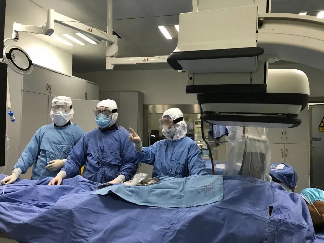 三级防护下,医护人员为病人紧急实施心脏介入手术