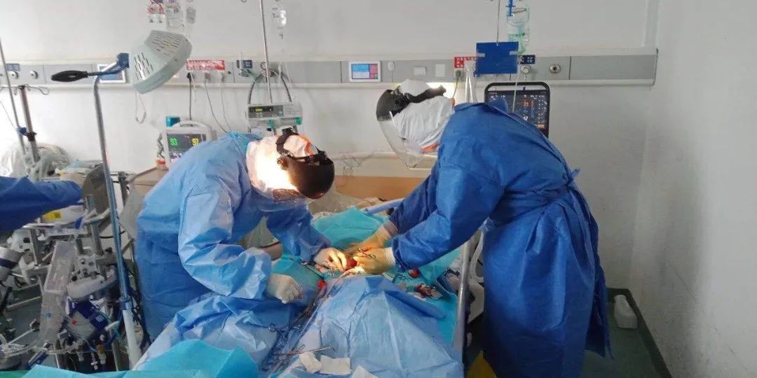 东院区邓宏平医生正在为危急患者搭建ECMO血管通路