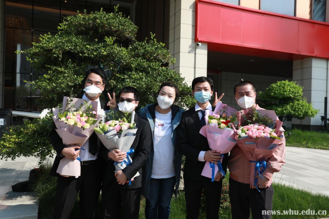 院长王高华、副书记王卫星带队到医疗队隔离点卓尔万豪酒店迎接。人民医院有关职能部门负责人,急重症医学科主任魏捷、副主任余追和护士长王莎莎,以及前期返院的医疗队员代表参加欢迎仪式。