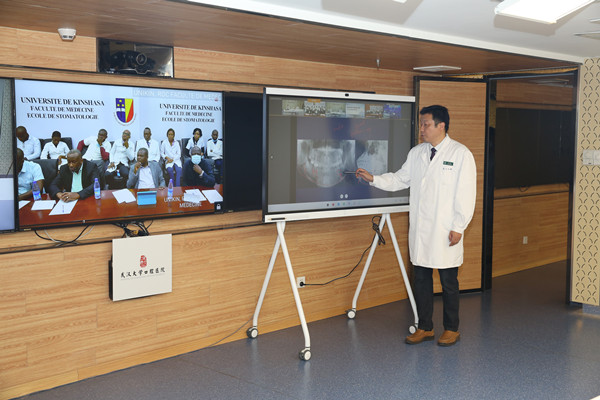 口腔医院刘冰、孙志军、贾俊等口腔颌面外科专家通过远程会诊系统,参与到1.1万公里外的金沙萨大学附属医院病例讨论,与非洲医生“面对面”为当地肿瘤患者“隔空把脉”。
