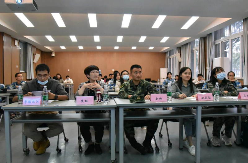 军训五团政委、健康学院党委副书记焦丽,五团团长余帅,健康学院团委书记陈亚新,药学院本科生辅导员王洋,基础医学院本科生辅导老师卡德尔江·库尔班、左文静、赵成毅出席比赛现场并担任评委老师。