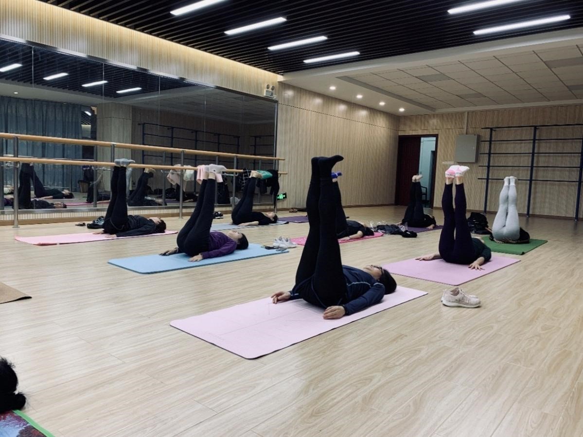 第四期教职工素质拓展班。拓展班开设形体和瑜伽两门课程,本学期12周课程,每周两个单元时间。第一次课,来自四个单位的二十余位教职工参与,老师们舞姿自信而优美,潇洒而恣意。